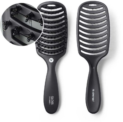 Gloss Air Brush ha un design “arioso”, che lascia fluire liberamente il flusso d’aria e offre un’asciugatura straordinariamente rapida ed efficace durante la pettinatura. Le setole innovative e flessibili scivolano facilmente tra i capelli e aiutano a ridurre al minimo la caduta. Le grandi punte rotonde a forma di sfera massaggiano delicatamente il cuoio capelluto e aiutano a stimolare la circolazione sanguigna. Infine, ma non meno importante, le setole dell’Air Brush sono posizionate strategicamente per garantire un’efficace separazione dei capelli durante la pettinatura.